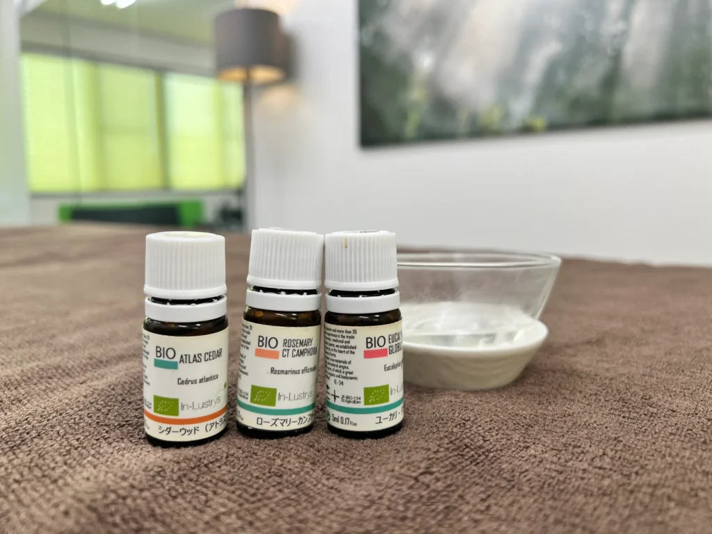 - 天然のアロマオイルを使用し、心身のバランスを整える。